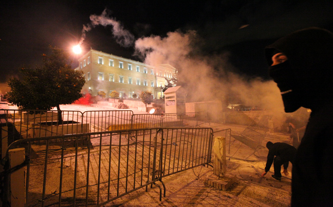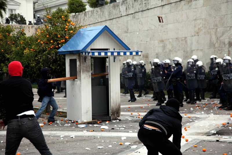 Youths attacked the police station throwing stones, reaching its entrance and forcing the cops to retreat and hide inside the building. During this direct action which lasted nearly five minutes, the facade was shattered and a police shield was taken as a trophy. The cops used fire extinguishers and shock grenades to disperse the rioters. The protesters took to the streets again and continued their march, attacking a luxury car parked nearby, but also smashing shop windows and destroying several bank surveillance cameras along their way. The anti-repression demo ended without any report of arrests.